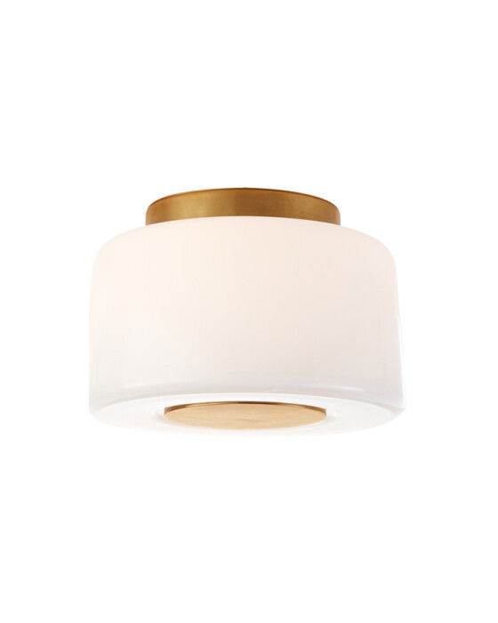 Acme Small Flush Mount in Soft Brass with White Glass är en stilren taklampa som ger en elegant touch till ditt hem. Tillverkad av Visual Comfort, den här lampan kombinerar modern design med hög kvalitet och funktionalitet.