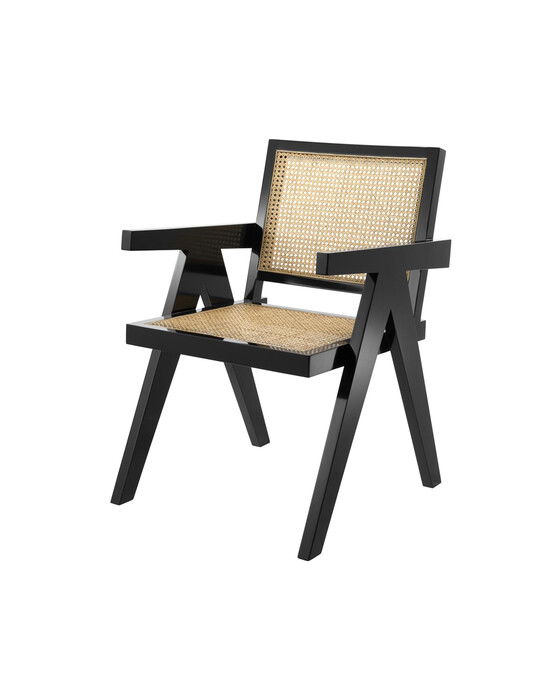 Adagio stol i svart mahogny och naturrotting, handgjord med en blank yta som kontrasterar vackert mot rottingen. En elegant och stilren matstol som passar perfekt in i den skandinaviska heminredningen.