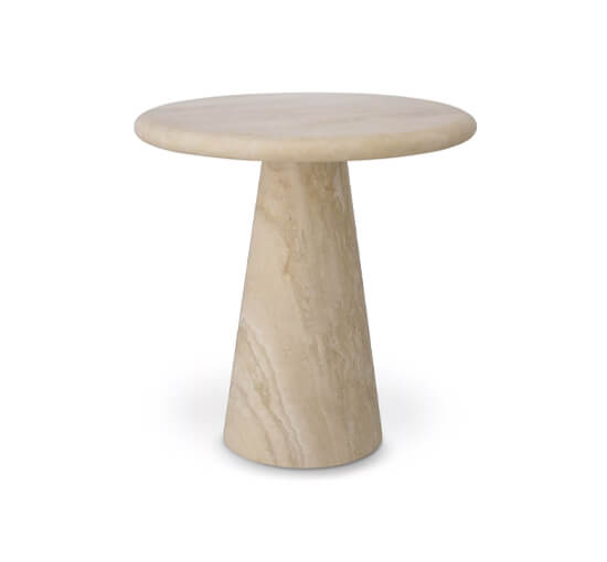 Adriana sidobord kombinerar enkel design med naturens skönhet och passar perfekt i ett modernt hem. Det skulpturliknande bordet är gjort av travertin, en form av kalksten, och har en rund toppskiva som vilar på en konisk bas. Med sina mjuka, vackra linjer bidrar det till en elegant modern design. Para gärna ihop med det större Adriana sidobordet för extra dimension.