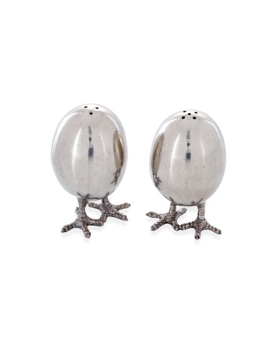 Dessa eleganta salt- och pepparkar från Newport är tillverkade av tenn och har motiv av två detaljerade ägg. Perfekta för att användas som en vacker dekoration på middagsbordet och som ett komplement till dukningen. Handdisk rekommenderas för att bevara deras skönhet. Rengör enkelt med en fuktig trasa och torka torrt omgående.