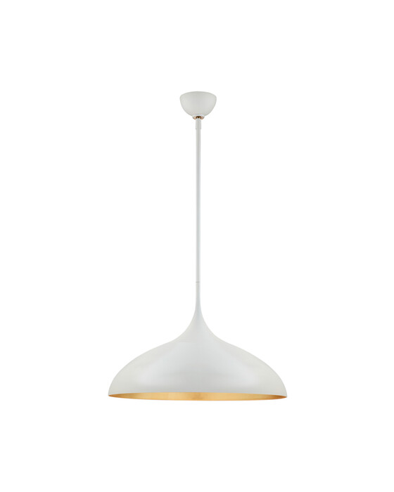 Agnes från AERIN är en modern taklampa med en minimalistisk, klockformad design och en elegant finish inspirerad av mitten av 1900-talet. Den är perfekt för medelstora, moderna utrymmen som kök, matsalar eller entréer. Den kontrasterande insidan och utsidan skapar en känsla av elegans som ger ytterligare karaktär när den är upplyst.