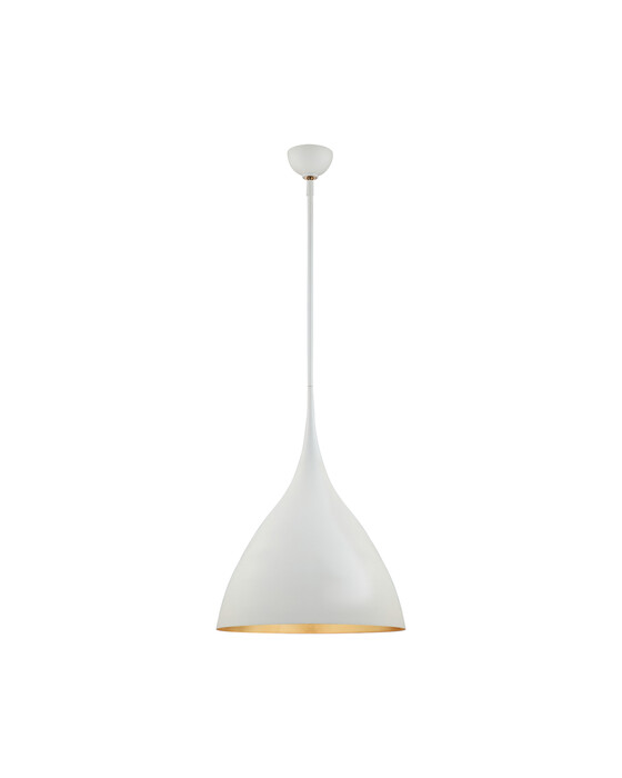 Agnes från AERIN är en modern taklampa med en minimalistisk, klockformad design och en elegant finish inspirerad av mitten av 1900-talet. Den är perfekt för medelstora, moderna utrymmen som kök, matsalar eller entréer. Den kontrasterande insidan och utsidan skapar en känsla av elegans som ger ytterligare karaktär när den är upplyst.