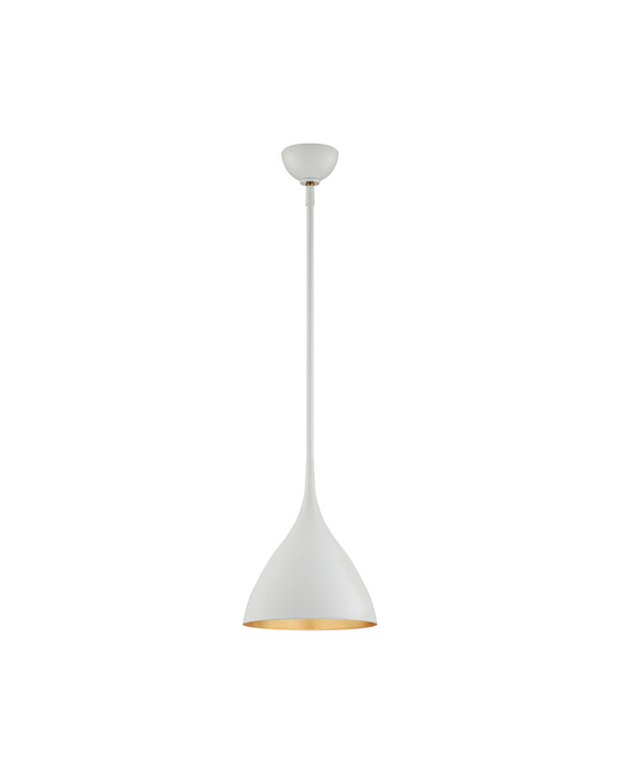Agnes från AERIN är en modern taklampa med en minimalistisk, klockformad design och en elegant finish inspirerad av mitten av 1900-talet. Den är perfekt för medelstora, moderna utrymmen som kök, matsalar eller entréer. Den kontrasterande insidan och utsidan skapar en känsla av elegans som ger ytterligare karaktär när den är upplyst.
