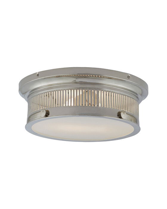 Den stilrena Alderly plafond nickel är designad av E.F. Chapman och Chapman & Myers och är perfekt för entréer och matsalar. Med diffusorer i frostat glas och traditionella mässingsramar ger den en elegant touch till moderna interiörer.