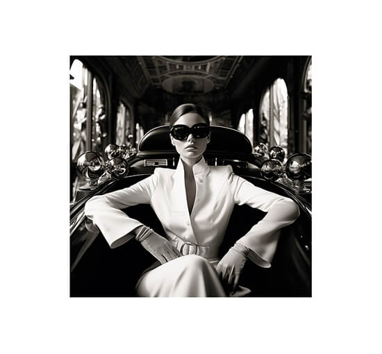 En fängslande och moderiktigt konstverk på plexiglas, föreställande en elegant kvinna. Den exklusiva designen tillför lyx och förfining till ditt hem och ger en djup visuell upplevelse i varje rum.