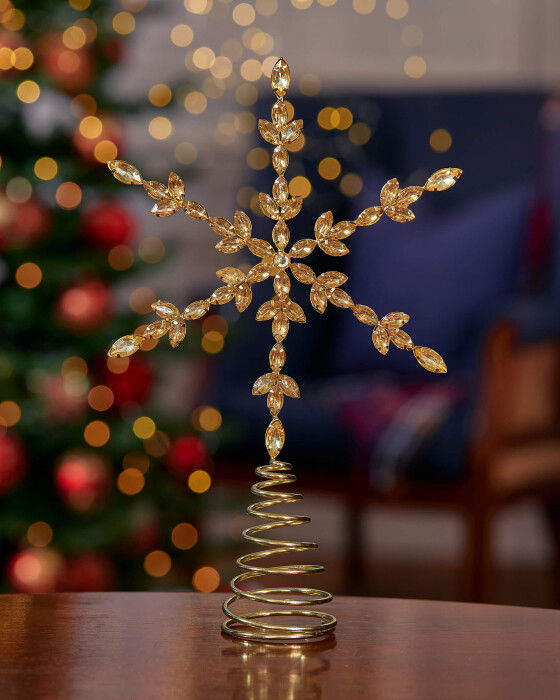 Althea toppstjärna i guld är den perfekta prydnaden för din julgran. Med sin gnistrande design och kristalliknande detaljer sprider den ett varmt skimmer i rummet. Inspirerad av en snöflinga och med en tidlös design passar denna stjärna perfekt in i ditt julfirande.