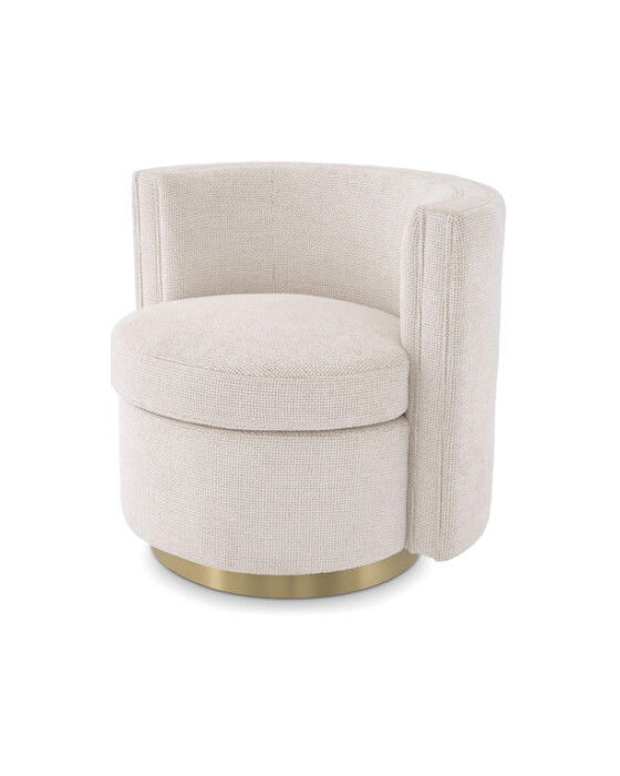 Den eleganta Amanda fåtöljen är ett fantastiskt designmästerverk med ett bågformat ryggstöd och armstöden. Den har en vridbar bas i matt guld och är klädd i en mjuk off-white färg. Med sin bekväma vaddering kommer den definitivt att passa perfekt i din inredning.