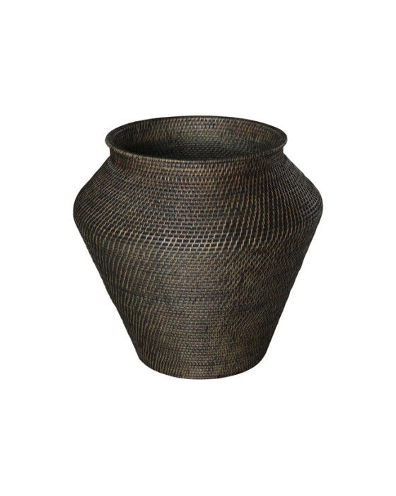 Den praktiska och snygga runda korgen i mörkbrun rotting från Artwood är perfekt för att gömma krukan till en växt.