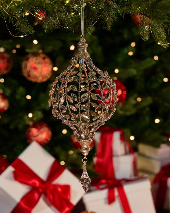 Dekorera ditt hem med denna magiskt vackra juldekoration i champagnefärg med glittrande detaljer och en glittrande prisma för en sagolik känsla.