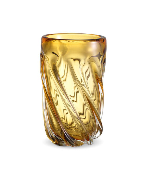 Angelito vas gul är en vacker vas i en skön gul färg som kommer att vara en perfekt dekoration på ditt bord, bänk eller fönsterbräde. Varje vas är handgjord av skickliga glashantverkare vilket gör den helt unik i sin snurrade design.