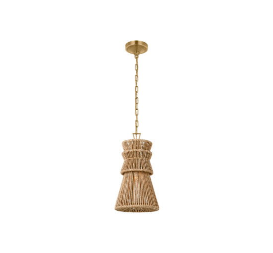 Antigua 10″ är en mindre takpendel med en diameter på 26,7 cm, perfekt för små utrymmen eller som en elegant touch över en köksö. Designad av Chapman & Myers för Visual Comfort, kombinerar denna armatur naturlig abaca och metall för en varm och organisk känsla.