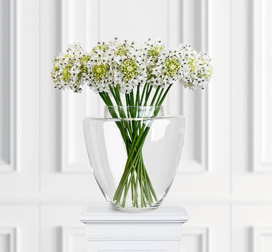 Denna naturtrogna Arabicum har vackra vita blommor med mörka detaljer som ger en sofistikerad och modern touch till din inredning. Perfekt för buketter eller som en solitär i en elegant vas.