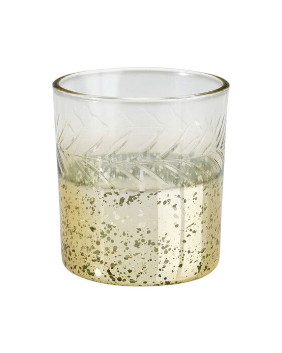 Den stilrena ljuslyktan Arietta har en guldglittrande botten och ett subtilt mönster i glaset. När ljuset sprider sitt sken genom det skimrande glaset skapas en varm och inbjudande atmosfär, perfekt för att höja mysfaktorn i vilket rum som helst.