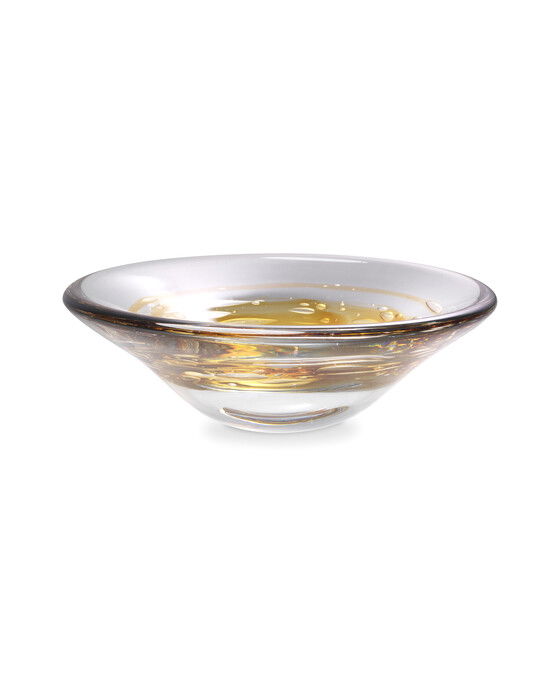 Med en iögonfallande gul virvel omgiven av klarglas blir skålen Arliss ett inspirerande tillskott till både det moderna hemmet, likväl till det med traditionella. Skålen hyllar den enkla men sofistikerade stilen och är handgjord vilket innebär att varje skål är unik – färg, mönster och storlek kan variera något.