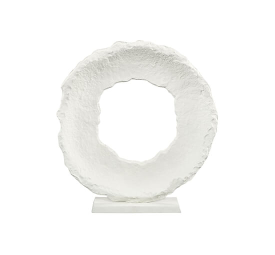 Armonia dekoration ivory L är en stilren och modern rund staty i aluminium som ger en exklusiv touch till ditt hem. Med dess strukturerade yta och eleganta form skapar den ett unikt visuellt intryck och passar perfekt för dig som vill tillföra en tidlös och konstnärlig detalj till din inredning.