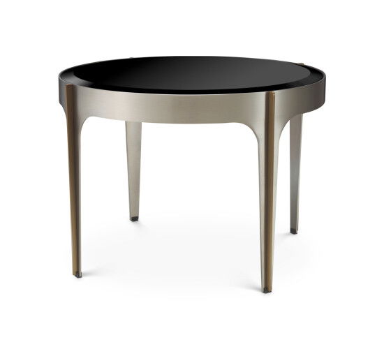 Upplev modern elegans med Artemisa Sidobord. Dess borstade stål- och mässingsfinisher blandas sömlöst, omramning den lyxiga svarta avfasade glasplattan. Designad för den kräsna, förvandlar denna eleganta möbel varje miljö med sin strömlinjeformade, moderna charm och förfinade dragningskraft, skapar en atmosfär av diskret lyx.