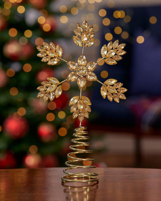 Aurora toppstjärna förvandlar granens topp till en gnistrande höjdpunkt. Den snöflingeinspirerade formen med gyllene detaljer fångar ljuset och sprider en varm glans som för tankarna till frostiga vinterdagar. Resultatet blir en gran med en känsla av klassisk julmagi och tidlös elegans. Som avslutande detalj i granen blir Aurora ett strålande blickfång som höjer stämningen år efter år.