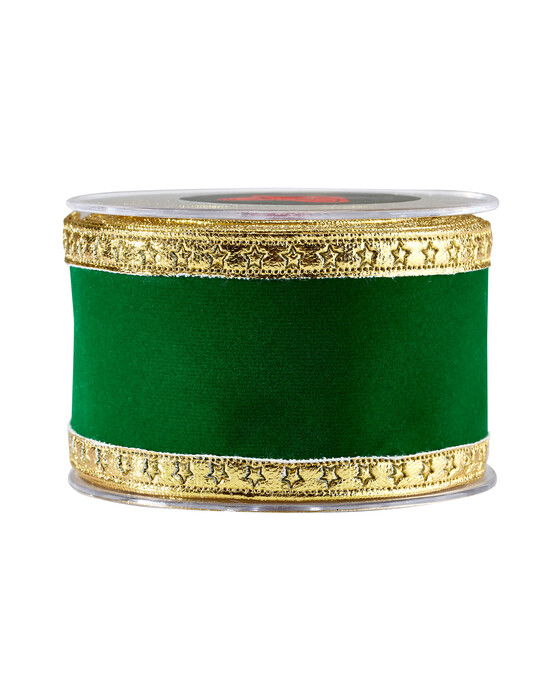 Dekorera dina julkransar, julgranen eller julklappar med detta vackra textilband i grön färg med guldig kant från Newport. Bandet är 4,5 meter långt och 6,7 cm brett, perfekt för att ge dina juldekorationer det lilla extra touch.