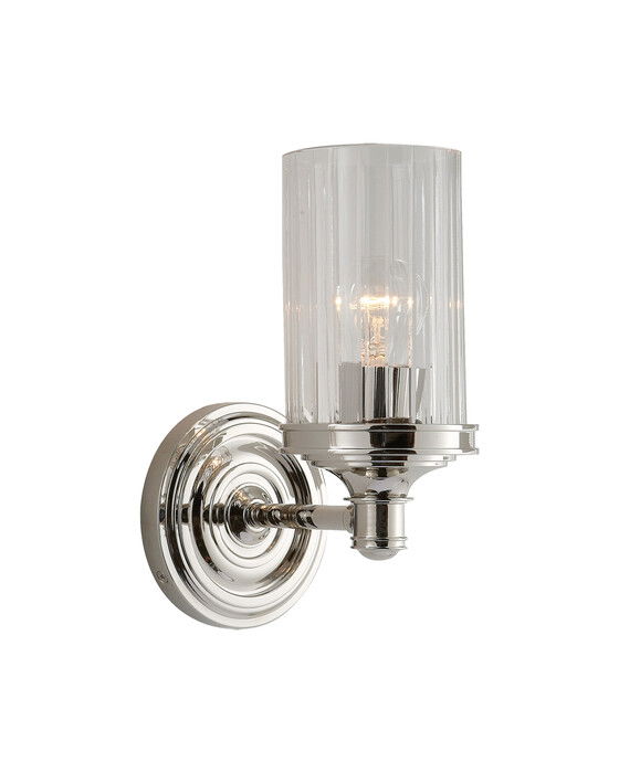 Den eleganta Ava vägglampan i polerad nickel med kristall är en stilren och sofistikerad belysningslösning för ditt hem.
