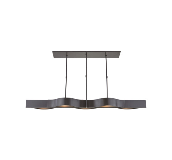 Den trendiga Avant takpendel i linjär brons är inspirerad av den kaliforniska kustlinjen och har rena, böljande linjer med vackra metalliska ytor. Dess enkla, moderna former med frostat glasaccents ger rummet en skulptural touch.