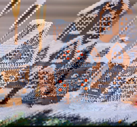 Ge din jul lite extra magi med Bakewell pepparkakshus. Det är julens charmigaste dekoration som med sitt varma sken lyser upp vinterns mörka kvällar. Huset har utformningen av en liten stuga med inspiration från viktoriansk arkitektur och dekorativa detaljer i kristyr och glitter. Ge julen en sagolik atmosfär genom att skapa din egen vinterby tillsammans med de andra pepparkakshusen i vår Gingerbread House Collection. Dekorationen drivs av 3 stycken AAA batterier. Batterier ingår ej. Traditionen kring pepparkakshus runt jul härstammar från Tyskland och började redan så långt tillbaka som på 1500-talet. Det sägs att pepparkakshusen skapades som ett sätt för bagare att visa sin skicklighet och för att fira den festliga säsongen. Traditionen har fortsatt att sprida sig och är idag en älskad jultradition världen över.