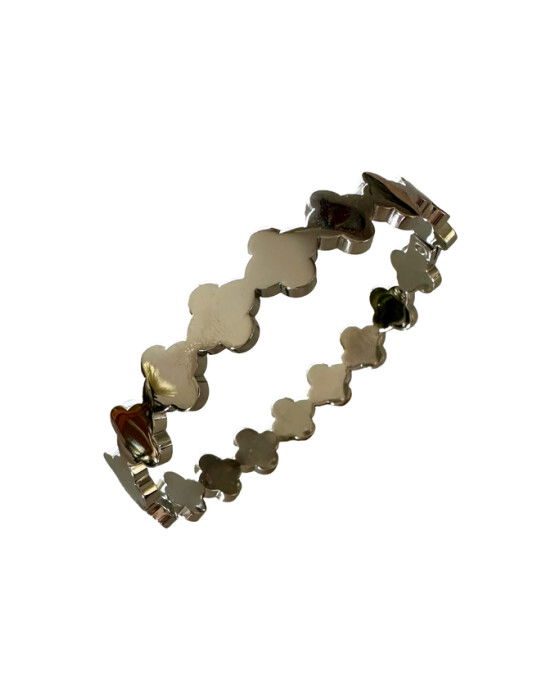 Det vackra och tidlösa bangle klöver armbandet i silverfärgad metall är en sofistikerad accessoar som passar perfekt för både vardag och fest. Med sina klöverformade länkar i blankpolerat stål och detaljrika finish utstrålar armbandet både lyx och elegans, vilket gör det till ett vackert komplement till varje smyckesamling.