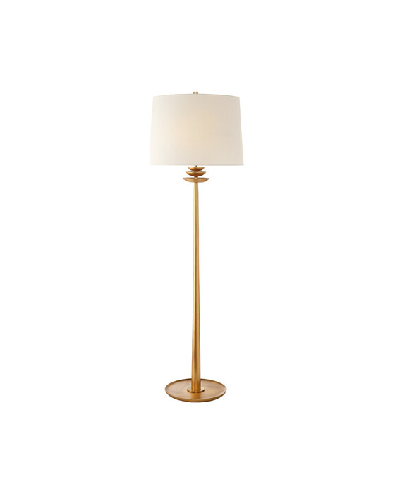 Beaumont från AERIN tar en välbekant silhuett och omformar den med moderna detaljer. Kronbladsliknande designelement ger en organisk touch till öppna utrymmen såsom bibliotek eller vardagsrum. Skärmar i linne ger riklig, sofistikerad belysning.