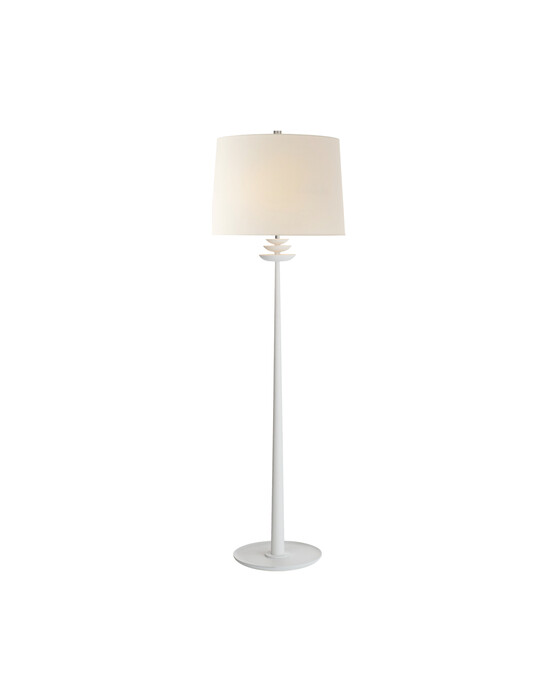 Beaumont golvlampa är en elegant och modern belysningslösning från AERIN som omformar en traditionell silhuett med moderna detaljer. Med sina kronbladsliknande designelement ger den en organisk touch till öppna utrymmen såsom bibliotek eller vardagsrum. Skärmen i linne ger riklig och sofistikerad belysning.