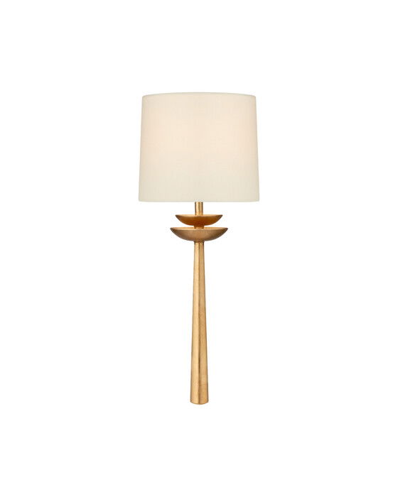 Beaumont från AERIN tar en välbekant silhuett och omformar den med moderna detaljer. Denna vägglampa har kronbladsliknande designelement som ger en organisk touch till ditt hem. Skärmen i linne ger riklig och sofistikerad belysning, passande för öppna utrymmen såsom bibliotek eller vardagsrum.