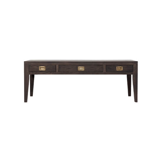 Belknap soffbord från Newport är ett rymligt och stilfullt komplement till vardagsrummet. Det har gott om utrymme och sex utdragbara lådor till förvaring. Tillverkad för hand i exklusiva materialval med gedigen kvalitet, detta soffbord i Mountain Wenge utförande ger en ekträmöbel med rustik och exklusiv elegans. Passar lika bra i en lyxig fjällstuga som i det stilfullt inredda året runt-boendet. Den ekbeklädda ytan har en matt, mörkt brun nyans där träets naturliga struktur och ådringar framträder tydligt, vilket ger varje möbel sitt personliga och exklusiva uttryck.