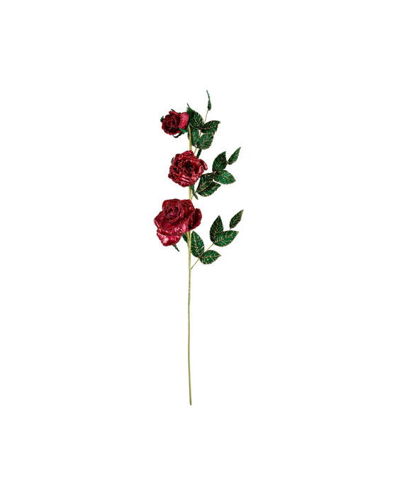 Den magiskt vackra Belle kvist röda rosen med gnistrande glitter på bladen fångar essensen av romantik och magi. Med sin djupa, intensiva röda färg och skimrande yta påminner den starkt om den ikoniska rosen från en Disneyfilm. Perfekt som en elegant dekoration eller en unik gåva, denna glittrande ros förhöjer atmosfären med sin tidlösa charm och förtrollande skönhet.
