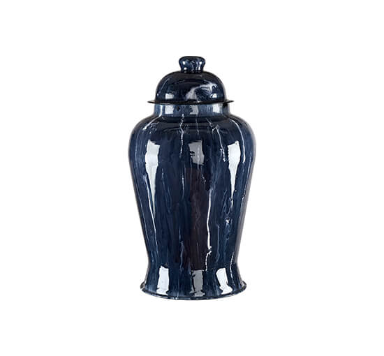 Den eleganta metallurnan med lock har en handemaljerad, glansig yta och en sofistikerad form som skapar ett unikt och exklusivt inslag i hemmet. Perfekt som dekorativ detalj i vardagsrummet, hallen eller på en skänk. Tidlös design som passar både moderna och klassiska inredningsstilar med kvalitetsmaterial och skickligt hantverk som ger en känsla av karaktär och elegans.