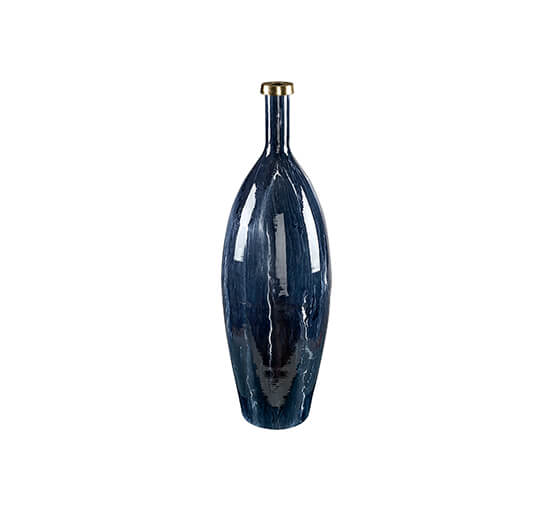 Ge ditt hem en tidlös och elegant touch med denna unika vas, tillverkad av handemaljerad metall med en blank och glansig yta. Varje vas är ett konstverk i sig, med små variationer i utseende som gör den till ett personligt och exklusivt inslag i din inredning. Denna vas fungerar lika väl som en dekorativ detalj som för att framhäva blommor eller kvistar på ett bord, en skänk eller i en hylla. Dess robusta konstruktion och vackra emaljerade finish kombinerar funktion och design på ett sätt som få andra detaljer kan.