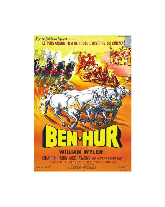 Återupplev spänningen och dramatiken från en av filmhistoriens mest ikoniska episka filmer med detta motiv från Ben-Hur. Tavlan fångar den intensiva hästkapplöpningen och andas kraft, energi och hjältemod. En perfekt detalj för filmälskare och den som vill ha en klassisk och kraftfull stämning i sitt hem.