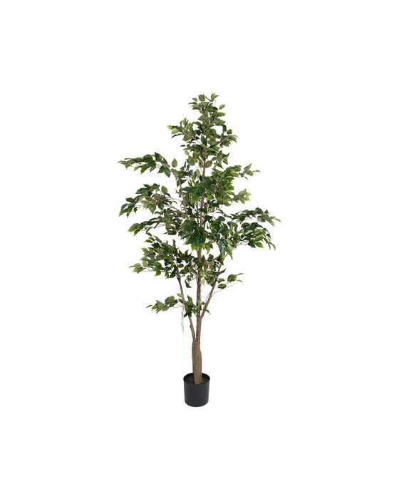 Denna naturtrogna benjaminfikus är hela 210 cm hög vilket gör den till ett perfekt val vid smyckning av ditt vardagsrum, kontor eller uterum. De detaljerade kvistarna och bladen tillsammans med den naturtrogna stammen ger intrycket av ett riktigt träd.