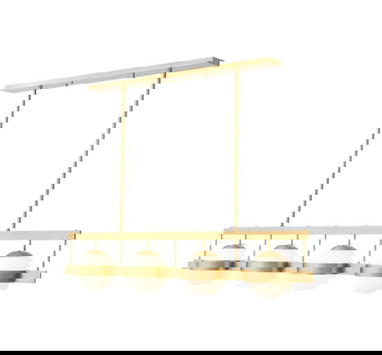 Den eleganta taklampan från Eichholtz är ett stilfullt tillskott till ditt hem. Med en järnstomme i mässingsfinish och fyra runda bollar i vitt glas skapar den en behaglig atmosfär i rummet. Perfekt att placera över matbordet i matsalen.