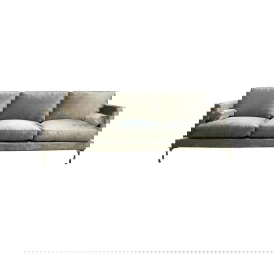 Bonham soffa är en elegant 3-sits soffa i beige sammetstyg med fyllning av dun och kallskum. Soffan finns i flera färger och ben i svart eller mässingsfinish.