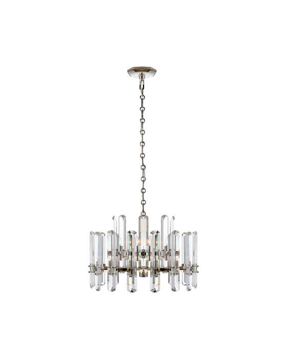 Bonnington från AERIN har långsträckta kristaller som ger både gnista och stil. Inspirerad av modern design från mitten av 1900-talet, är denna takkrona ett fantastiskt tillskott till alla hem. Oavsett om den hänger i en stiliserad kedja eller pryder en vägg, kan Bonnington med olika storlekar och utföranden på metallen ge en känsla av glamour och lyx till mindre och medelstora rum samt korridorer. De handskurna kristallerna är slående i sitt arrangemang och förgyller varje utrymme med tidlös skönhet.