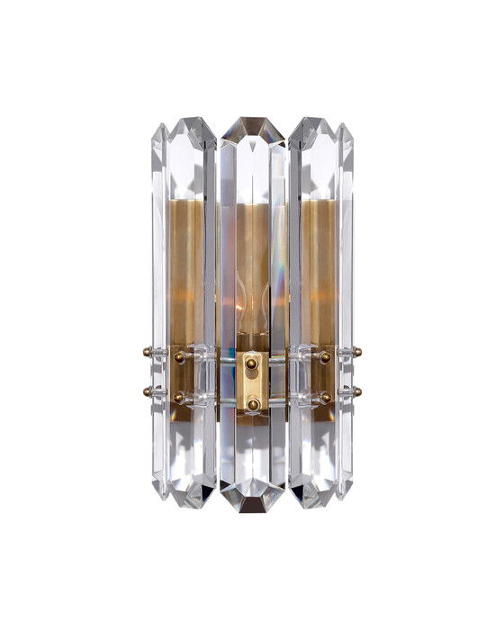 Bonnington från AERIN har långsträckta kristaller som ger både gnista och stil. Inspirerad av modern design från mitten av 1900-talet är denna vägglampa ett fantastiskt tillskott till alla hem. Oavsett om den hänger i en stiliserad kedja eller pryder en vägg, kan Bonnington ge en känsla av glamour och lyx till mindre och medelstora rum samt korridorer. Med handskurna kristaller som är slående i sitt arrangemang förgyller denna lampa varje utrymme med tidlös skönhet.