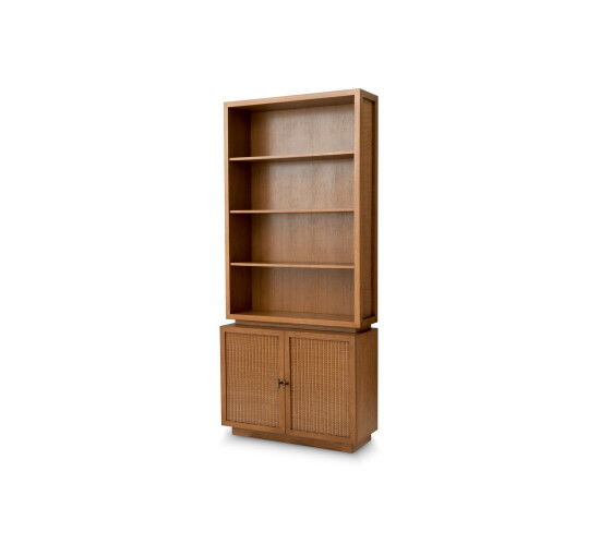 The Cabinet Borchard combines caramel oak veneer with intricate rattan paneling, radiating an essence of timeless refinement. With its warm golden hue, this luxurious piece is designed for the discerning connoisseur, offering a harmonious blend of texture and tone to create an exclusive ambiance.