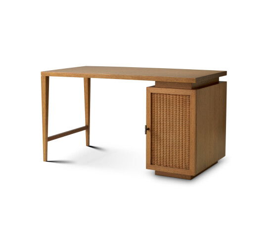 Experience refined luxury with the Desk Borchard, crafted in a rich caramel oak veneer that envelops rattan paneling. This piece seamlessly combines warmth with sophistication, offering a timeless elegance designed for the discerning connoisseur. Its graceful aesthetic transforms any interior into a haven of indulgence, making it an essential addition for those who value exceptional design.
