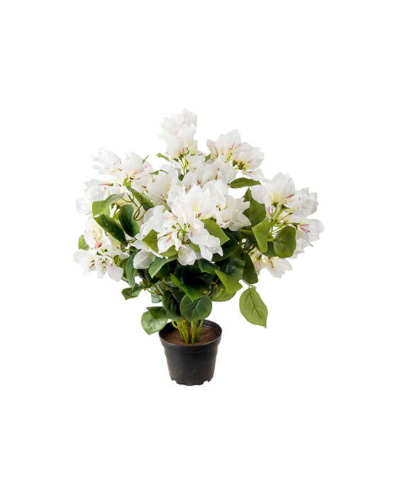 Denna naturtrogna konstgjorda Bougainvillea i elegant vit färg ger en sofistikerad och fräsch känsla till ditt hem. De täta bladen och detaljerade blommorna skapar en tropisk och stilren atmosfär utan krav på skötsel.