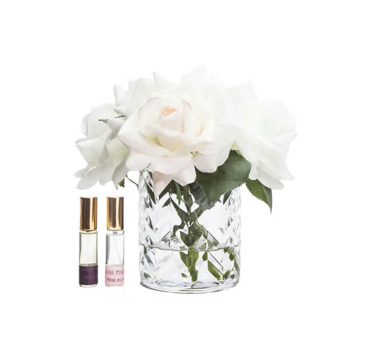 Det exklusiva Bouton de Rose gåvoset innehåller en vacker dekorativ blombukett som du kan spraya med medföljande rumsdoft för en underbar doftupplevelse. Rosorna är tillverkade av högkvalitativt konstmaterial och sitter i en klar glasvas med ett elegant fiskbensmönster. Med gelébasen håller buketten formen och blombladen är handgjorda för att se och kännas som äkta rosor. En perfekt presentidé inspirerad av det franska provinsbylivet.