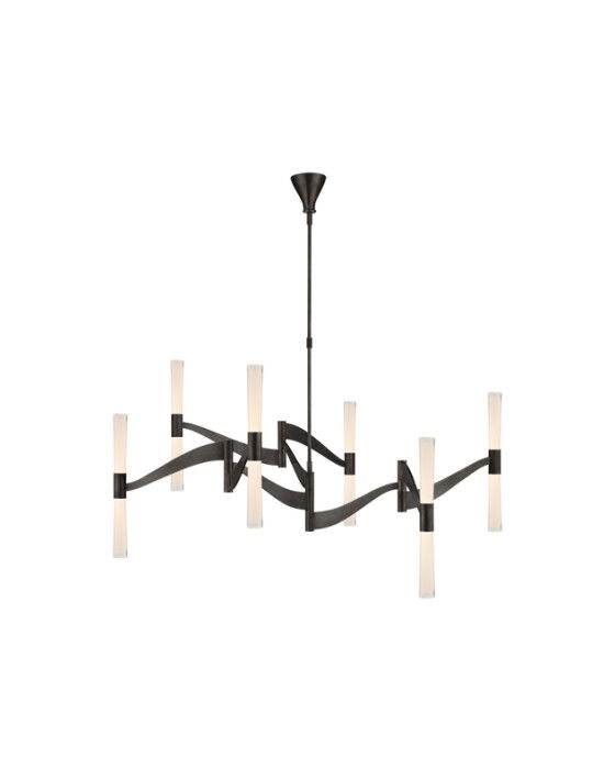 Den Brenta takkrona av AERIN erbjuder en innovativ design för funktionell belysning. Med förlängda, cylindriska skärmar i enkel, dubbel eller klusterformation kan den lysa upp olika interiörer, från badrum till vardagsrum. Med möjligheten att rikta ljuset vertikalt eller horisontellt samt justerbara delar är Brenta både sofistikerad och mångsidig.