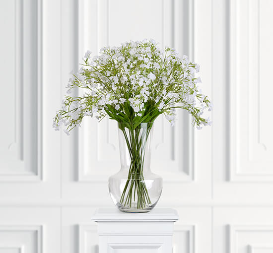Denna vackra brudslöja snittblomma i vitt är den perfekta inredningsdetaljen för att skapa en naturtrogen känsla i ditt hem. Med en höjd på 55 cm är den en ståtlig konstblomma som ger ett botaniskt inslag till rummet.
