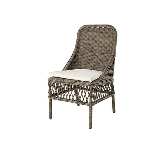 Matstolen Brussel i färgen vintage från Artwood är tillverkad av väderbeständig konstrotting och har en gedigen stomme av aluminium. I sin tidlösa design ger stolen ett klassiskt och stilenligt intryck. En perfekt utemöbel för din altan eller uteplats. Ljus dyna med avtagbar klädsel i 100% polyester ingår, kemtvätt rekommenderas. Dynans stoppning består av en polyeterkärna med svept fiber och riven polyeter. Stolen har en sitthöjd på 50 cm.