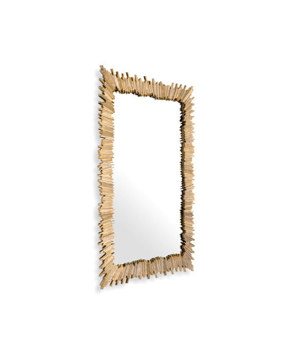 Den sömlösa blandningen av modern estetik och klassisk charm i Eichholtz Bryant spegel ger en lyxig touch till vilket vardagsrum som helst. Med dess guldiga metallram blir den en signaturdel för den kräsna ögat, med en iögonfallande detalj som erbjuder en sofistikerad twist för att förhöja ditt hems inredning.