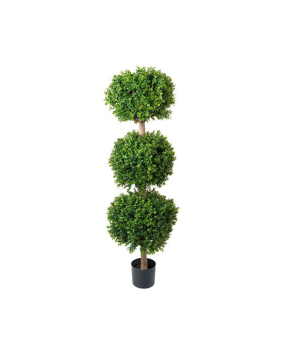 Denna konstgjorda buxbomsväxt har täta gröna blad och är formad som en rund buxbom. Perfekt för att placeras i en kruka vid entrén eller i uterummet. Undvik direkt solljus för att hålla konstväxten fin år efter år. Med måtten Diameter överkant: 17 cm, Diameter underkant: 15 cm och Höjd: 15 cm.