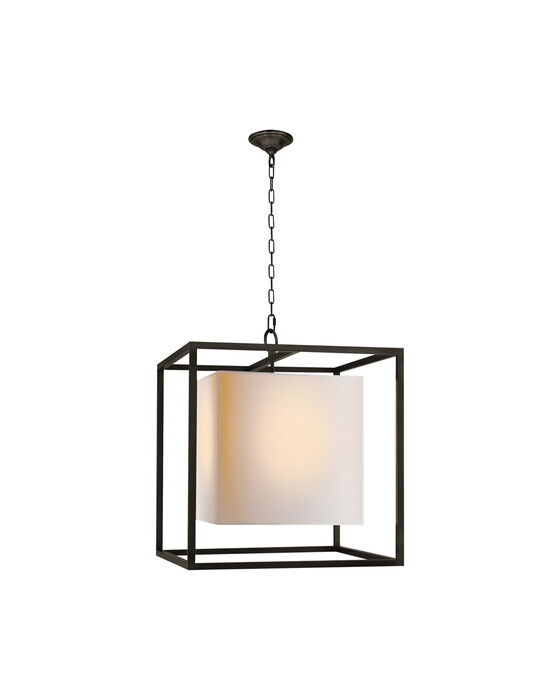 Den medium stora Caged Lantern i brons med naturlig pappskärm från Visual Comfort är en elegant taklampa som passar perfekt för att skapa en stämningsfull belysning i ditt hem.