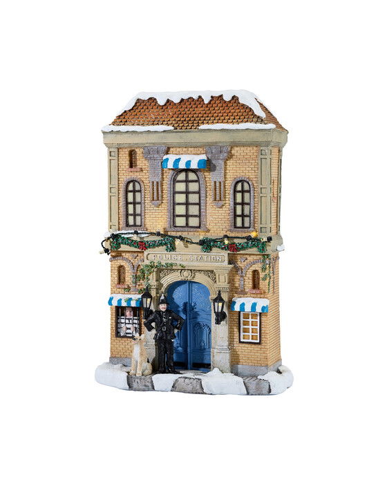 Upplev julens magi med Calvin polisstation juldekoration. Denna charmiga och detaljrika dekoration i form av en polisstation för tankarna till sagornas magiska värld och skapar en förtrollande julatmosfär hemma. Dekorationen har LED-belysning som går att tända för extra stämning. Kombinera gärna fler dekorationshus för att skapa din alldeles egna julvärd hemma. Drivs av batterier tre AAA- batterier. Batterier ingår ej.